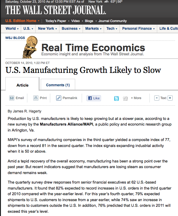 On a subject that is of great interest to me, and one that will affect you, is manufacturing.