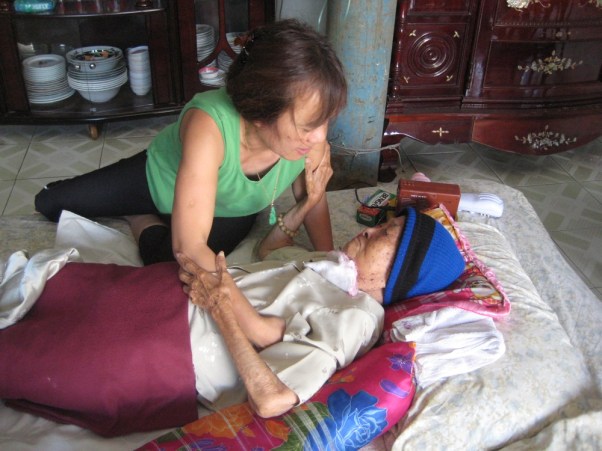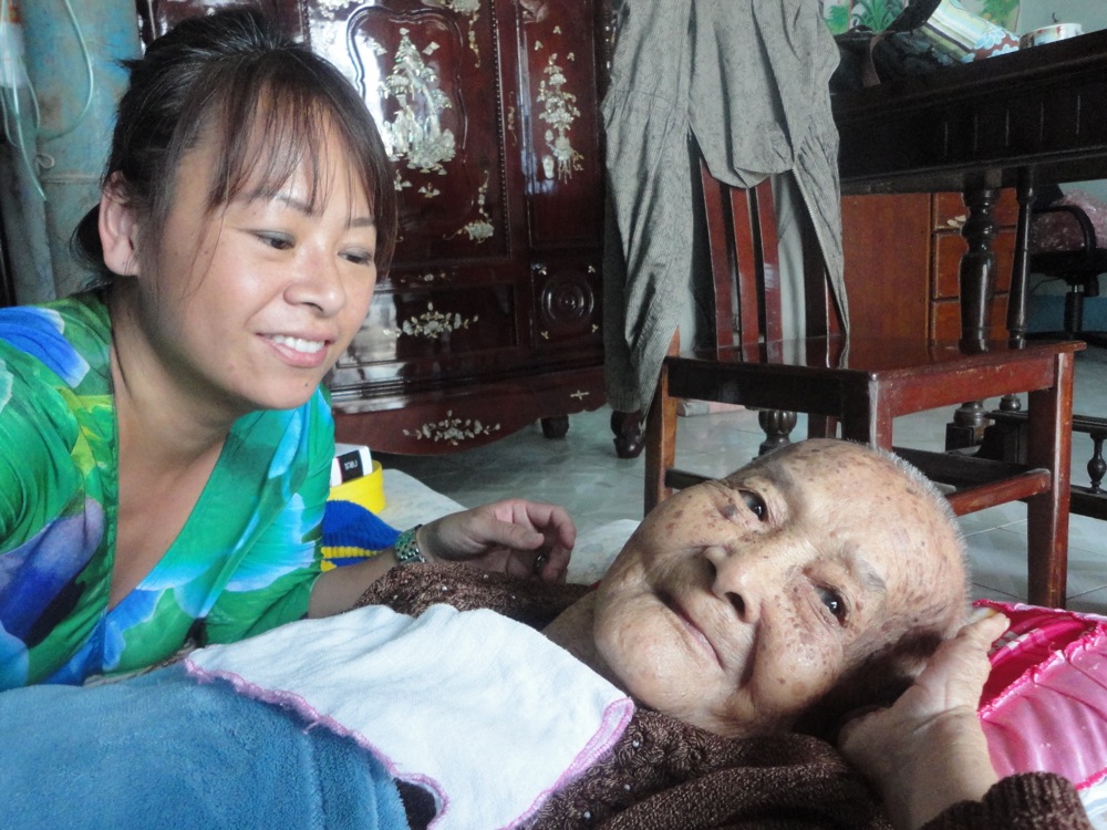 Me and my Gram. She sleeps on a mattress right on the floor. This is where and how I am during my visits: lying right next to her! 🙂