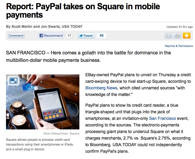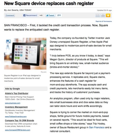 So now comes an industry changer. Square is coming to replace registers nationwide. (Click on image to get to full article.)